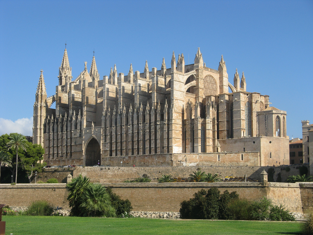 Самая впечатляющая достопримечательность Пальма де Майорки — кафедральный собор — расположен на самом берегу моря. Собор монументален — его высота 44 м, а длина 120. Официальное название собора — кафедральный собор Пресвятой Девы Марии, но его также называют Пальмским собором или Ла Сеу. Еще одно название: собор Святого Причастия, моря, света и пространства. При первом взгляде на здание становится понятно, откуда такое название, ведь он стоит у моря и буквально наполнен светом. Лучи солнца проникают через многочисленные стрельчатые окна, а также через окно-розу, одно из самых больших в мире.