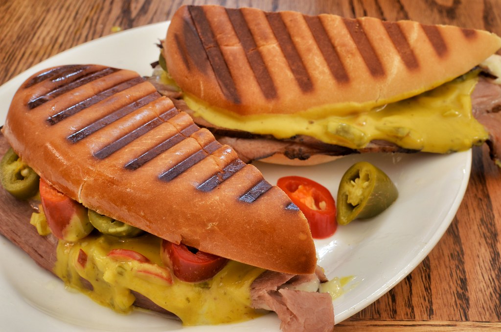 Панини — итальянский вариант хот-дога — два кусочка чиабатты с начинкой из мяса, курицы, рыбы и овощей. Бутерброд поджаривают на гриле и подают с ароматными травами, чаще всего базиликом.