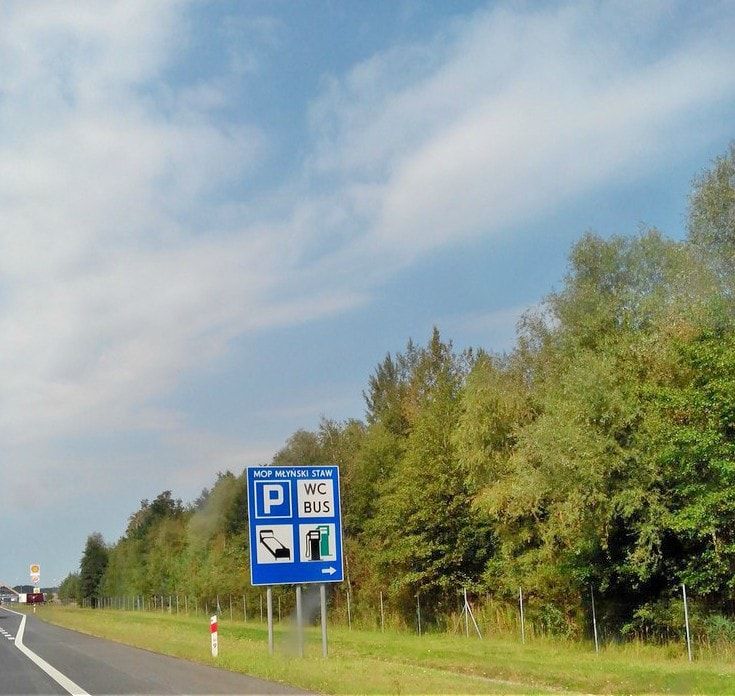Частенько рядом с местами для отдыха расположены кафе типа McDonalds или Burger King, а также заправки. Туалеты на заправках, в отличие от заправок Германии, например, или Чехии, бесплатные. Вообще стоит отметить уборные в Польше — они очень часто бесплатные и всегда идеально чистые. А как еще говорят: о качестве заведения судят по туалету. Ну вы поняли.