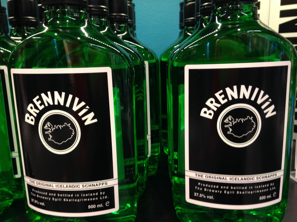 Бреннивин — настоянный на картофеле шнапс с крепостью аж целых 37,5 градусов. В силу дешевизны и крепости очень популярен и маргинальных слоев исландского населения, что никак не влияет на качество и популярность напитка. Бреннивин называют также «черная смерть», потому что на его этикетке иногда изображают череп и скрещенные кости. Власти Исландии начали штамповать такие этикетки во времена сухого закона начала 20 века, чтобы избавить людей от желания покупать Бреннивин. Покупать его никто не перестал, времена сухого закона прошли и сегодня вы вполне можете увезти с собой бутылочку на память. Цена за 1 л примерно 30-40 евро.