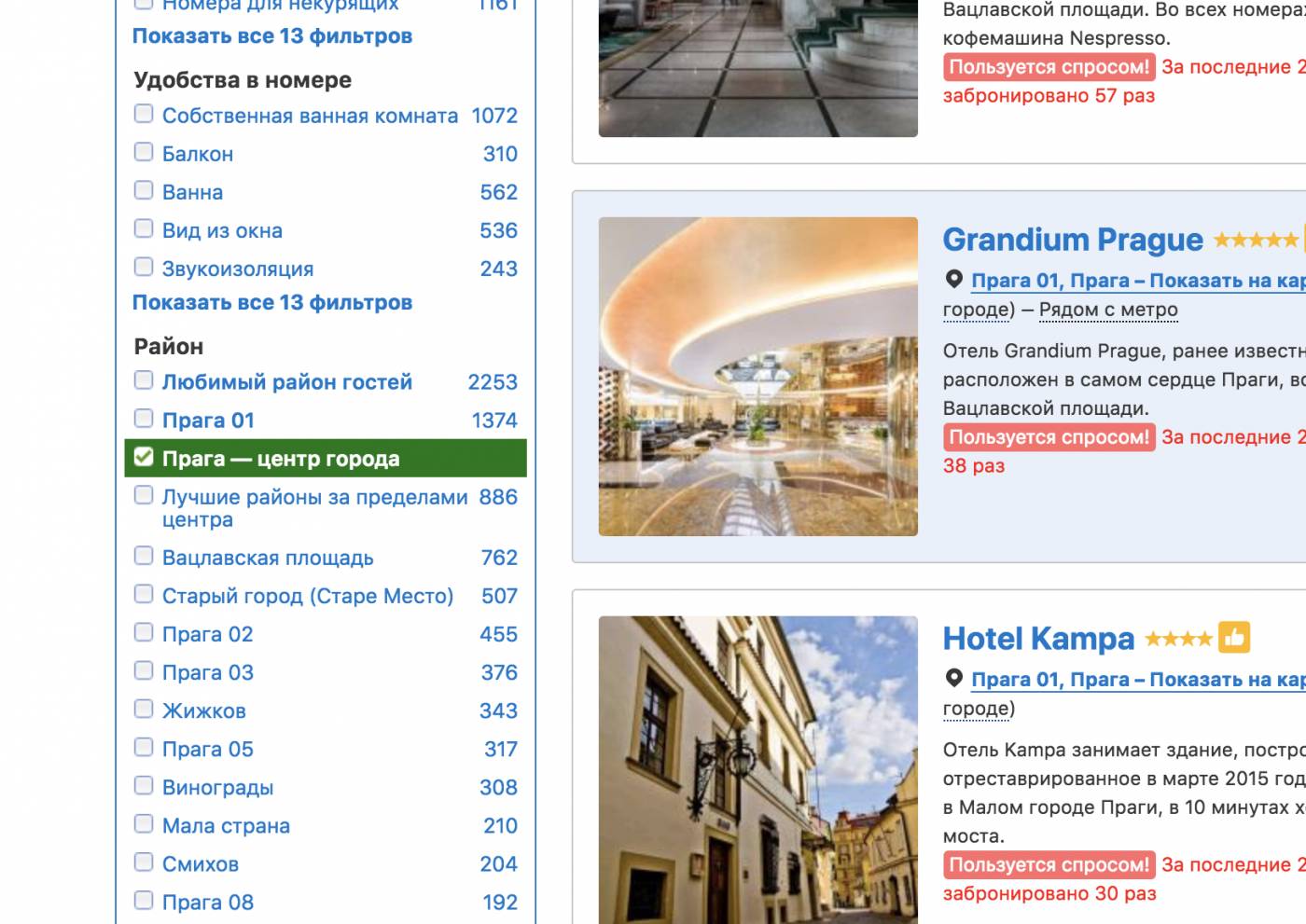 Если вы бронируете отель через Booking.com, вам нужно просто в меню для поиска слева отметить «Прага — центр города» и система подберет подходящие отели.